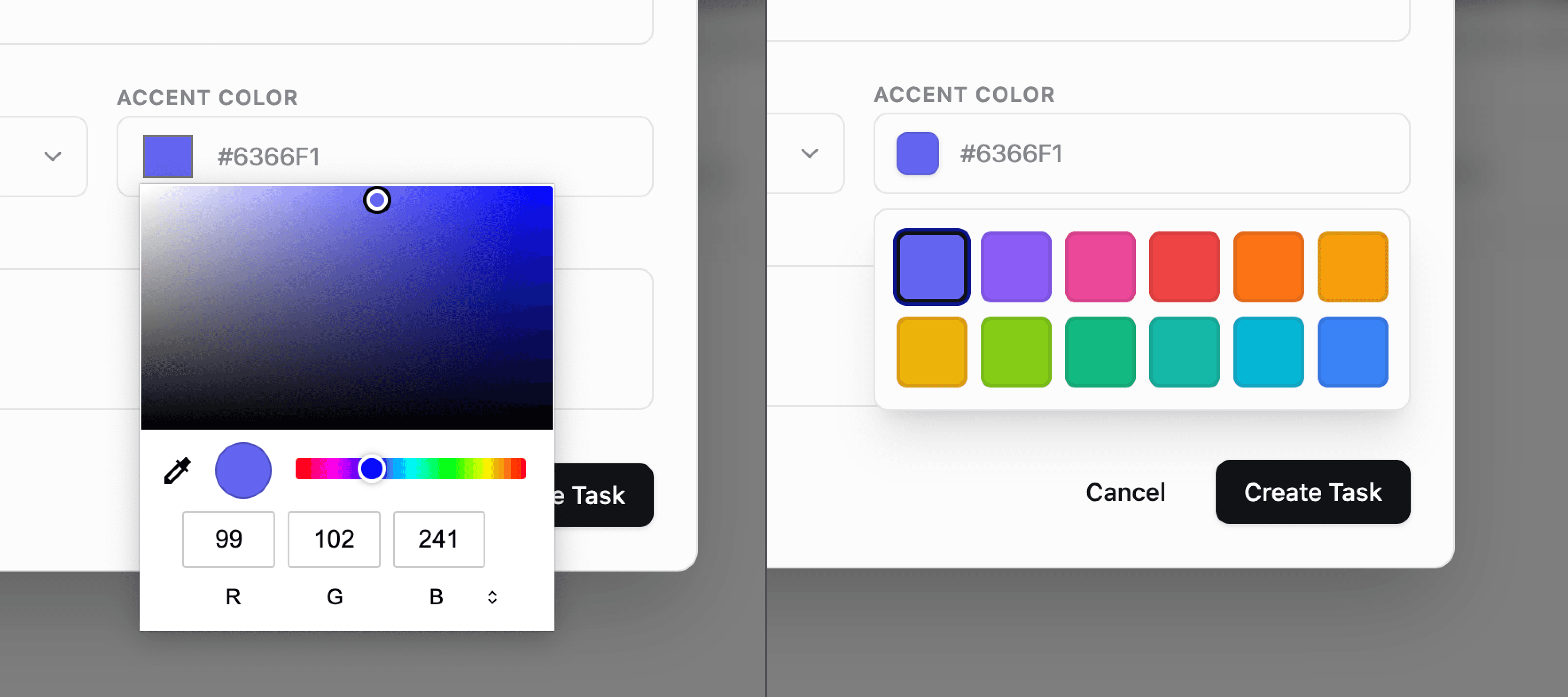 The solution: a selectable list of 12 preset colors. It covered everything they needed. It was accessible for new users who didn't have to pick random colors. And it opened us up to add task color as a filter option, or group tasks by color, or set automations.